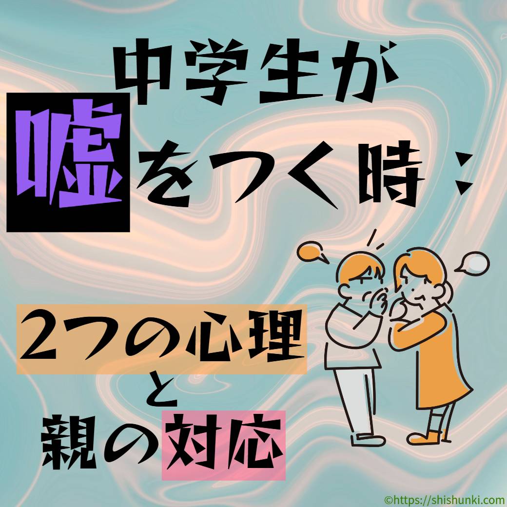 お気に入り追加 0 中学生が嘘をつくと、親としては ショックで不安になります。 しかし、その勢いで問い詰めたり または見逃したりしてしまうと 「嘘をつく癖」は習慣化する可能性が高くなります。 中学生が嘘をつ […]