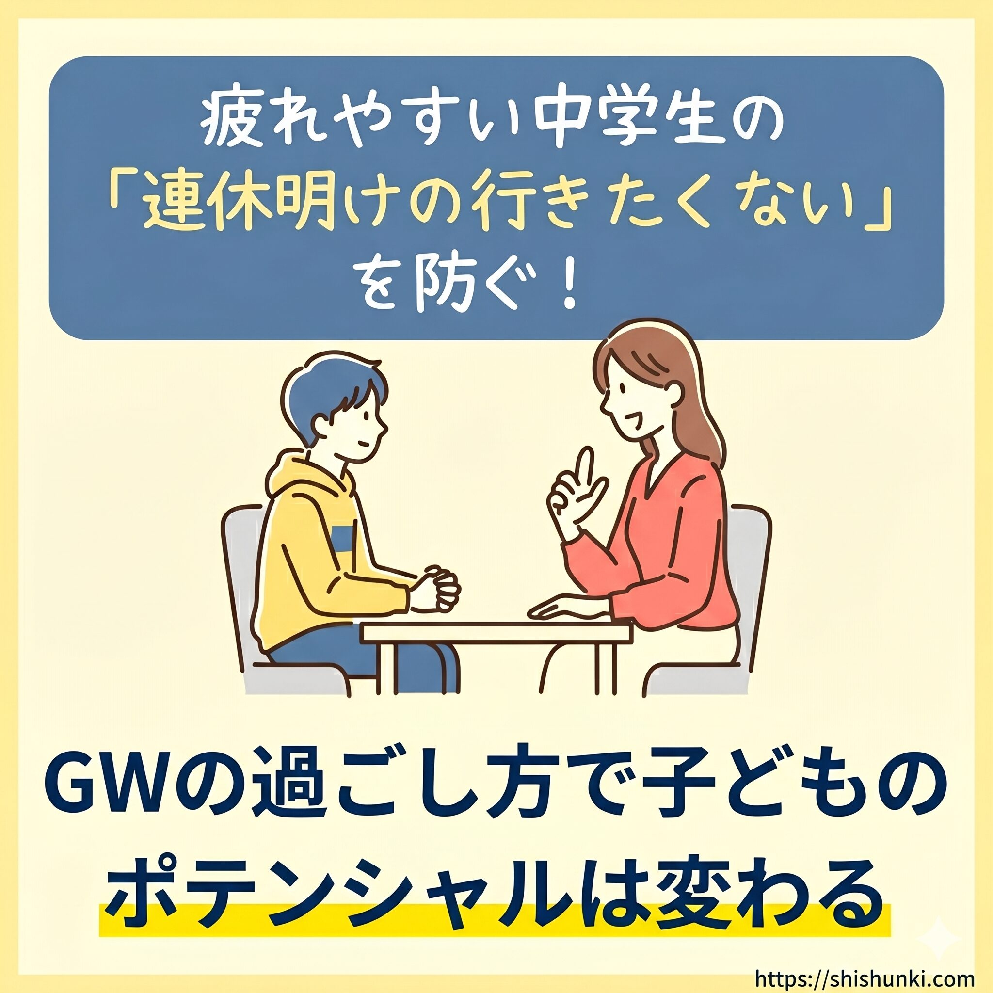 G疲れやすい中学生の「連休明けの行きたくない」を防ぐ!GWの過ごし方で子どものポテンシャルは変わる新着!!