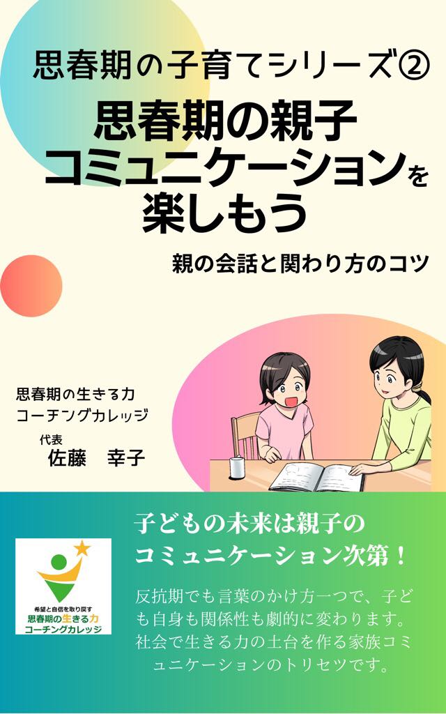 キンドル親子コミュニケーション表紙202304 2023年4月22日 最終更新日時 : 2023年4月22日 佐藤 FacebookXBlueskyHatenaCopy 子育てに役立つ、LINEメルマガのご登録はこちらからどうぞ! 今なら「プレゼント」とコメントするだけで『親子関係がびっくりするほど改善する!ラクラクコミュニケーション』PDFが届きます♪身体・心・頭のブレーキを外し、不登校さえ解決する「思春期の子どもと最幸家族になる講座」お子さんの「やる気」の育て方もわかります♪ 思春期コーチにご興味のある方向けのLINEメルマガは、こちらからどうぞ!たった1年で、ずっと求めら続けるプロコーチになる!「思春期コーチ™養成講座」も募集中です! FacebookXBlueskyHatenaCopy