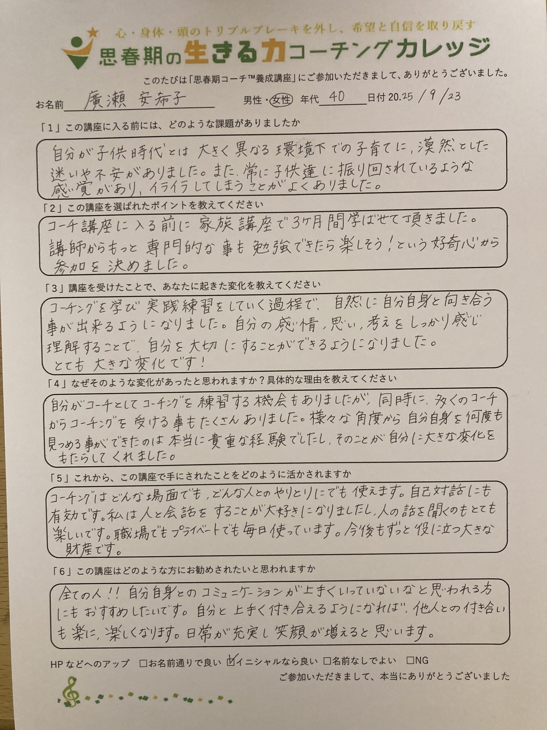kobanare1 2020年5月4日 最終更新日時 : 2020年5月4日 佐藤 FacebookXBlueskyHatenaCopy 子育てに役立つ、LINEメルマガのご登録はこちらからどうぞ! 今なら「プレゼント」とコメントするだけで『親子関係がびっくりするほど改善する!ラクラクコミュニケーション』PDFが届きます♪身体・心・頭のブレーキを外し、不登校さえ解決する「思春期の子どもと最幸家族になる講座」お子さんの「やる気」の育て方もわかります♪ 思春期コーチにご興味のある方向けのLINEメルマガは、こちらからどうぞ!たった1年で、ずっと求めら続けるプロコーチになる!「思春期コーチ™養成講座」も募集中です! FacebookXBlueskyHatenaCopy